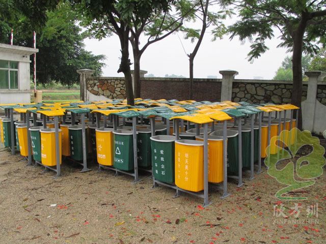 戶外環保組合玻璃鋼分類垃圾桶的型號規格:A39,1020*370*1030mm,采用優質玻璃纖維與進口樹脂著色合成,采用模具一次成型。玻璃鋼造型精美、潔凈、美觀、醒目、不退色,它具有強度高、耐腐蝕、耐酸堿、抗老化、太陽暴曬下不變形、抗紫外線、操作方便等特點是其他材質無法取代的。產品顏色及絲印可按客戶要求定制,無毒無污染,長久使用不褪色油漆不脫落。玻璃鋼垃圾收集箱適用于小區、市政、工廠、學校、物業等戶外垃圾桶的配置。