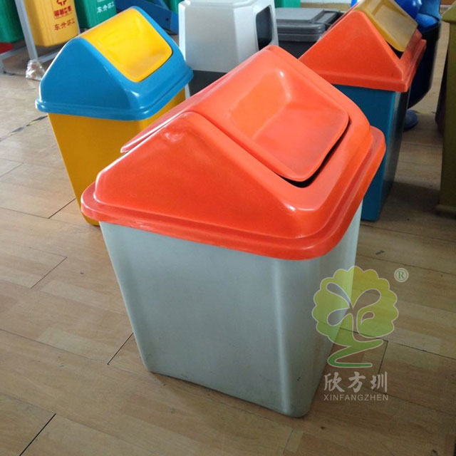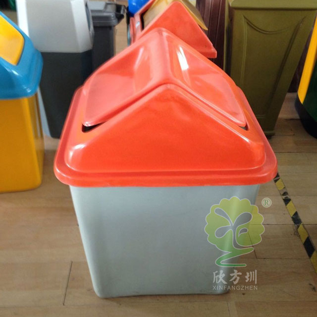 戶外環保玻璃鋼垃圾桶型號規格:A04,620*620*850mm,采用優質玻璃纖維與進口樹脂著色合成,采用模具一次成型。玻璃鋼造型精美、潔凈、美觀、醒目、不退色,它具有強度高、耐腐蝕、耐酸堿、抗老化、太陽暴曬下不變形、抗紫外線、操作方便等特點是其他材質無法取代的。產品顏色及絲印可按客戶要求定制,無毒無污染,長久使用不褪色油漆不脫落。玻璃鋼垃圾收集箱適用于小區、市政、工廠、學校、物業等戶外垃圾桶的配置。