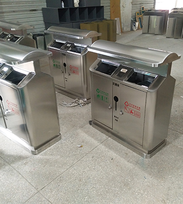 街道雙分類不銹鋼垃圾桶核心部件模壓成型不脫焊不易破損堅固耐用。全桶身不銹鋼制作的垃圾箱還具有防火功能,金屬亮澤,高雅美觀,應用范圍廣;內外表面光潔,減少垃圾殘留,易于清潔;可根據客戶需求選配鍍鋅內桶或玻璃鋼內桶。