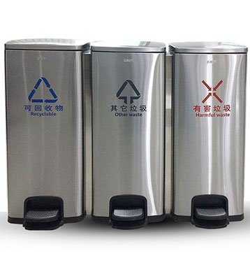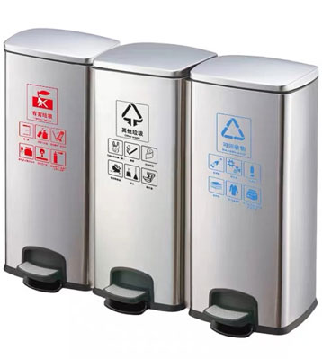 不銹鋼室內(nèi)三分類腳踏垃圾箱