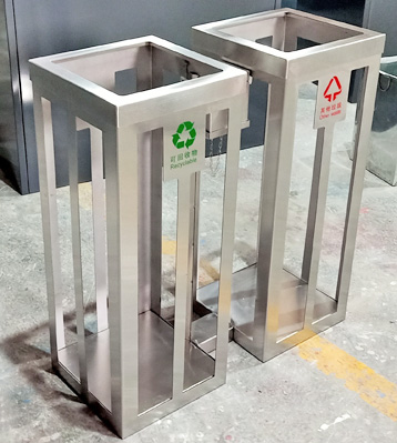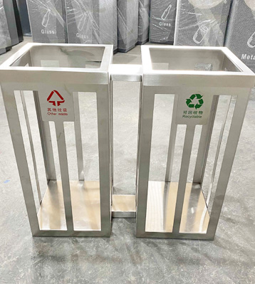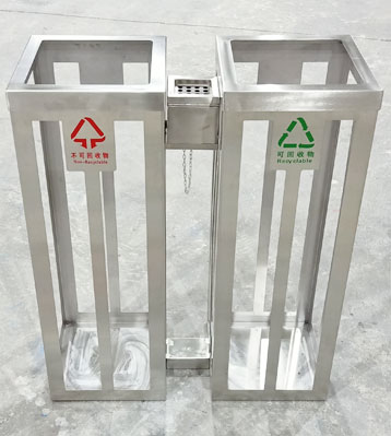 地鐵站方形可視分類垃圾箱核心部件模壓成型不脫焊不易破損堅(jiān)固耐用。地鐵站垃圾2分類投放設(shè)計(jì),足1.45厚304不銹鋼框架四周部分鏤空套垃圾袋,存放什么垃圾一目了然,及時(shí)了解排除安全隱患。有帶煙灰柱和不帶兩種款式。帶煙灰盅款安裝在兩分類桶中間,通過鏈條與桶身固定,可用于滅煙或煙蒂收集使用。桶身正面絲印可回收物、其他垃圾2分類標(biāo)識(shí),清晰醒目有助從地鐵車站等人流量大的場(chǎng)所做好垃圾分類投放!
