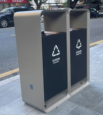 使用范圍:深圳福田城市形象更新果皮箱應用于城市廣場、市政主干道、福田綠道、商業街等戶外果皮垃圾分類投放使用。