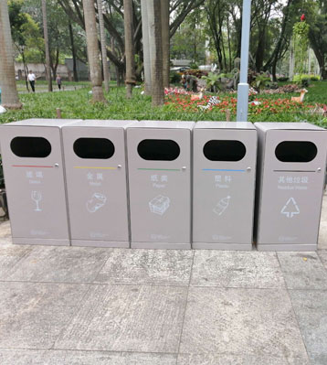 使用范圍:深圳公園戶外分類垃圾箱擺放于深圳皇崗公園,福田中心公園,兒童公園等戶外垃圾分類收集使用。