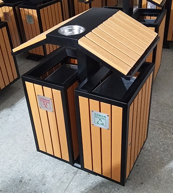街道兩分類鋼木垃圾箱