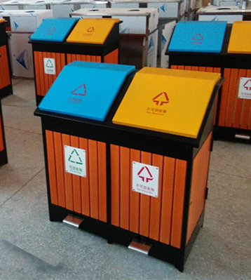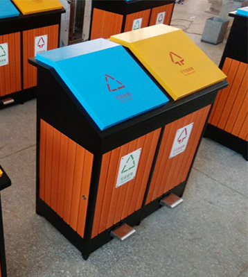 產品材質:欣方圳腳踏式分類鋼木垃圾箱采用現代化批量制作工藝