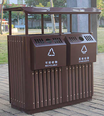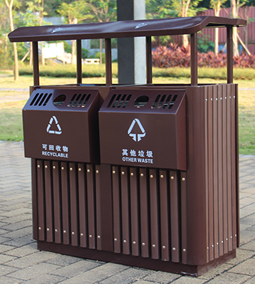 街道兩分類鋼木垃圾箱