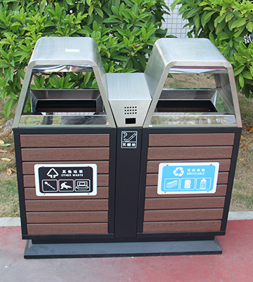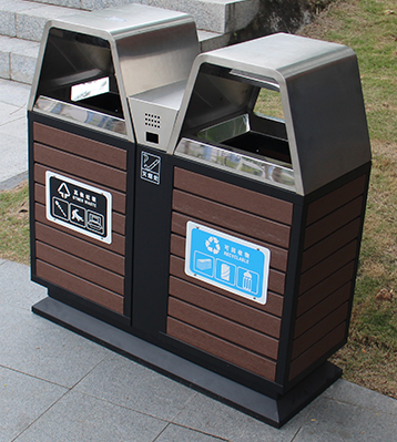 創意兩分類鋼木垃圾箱