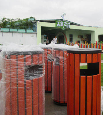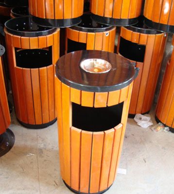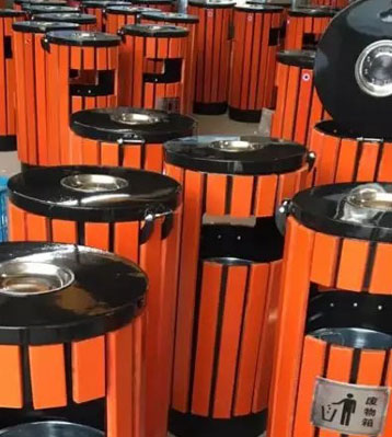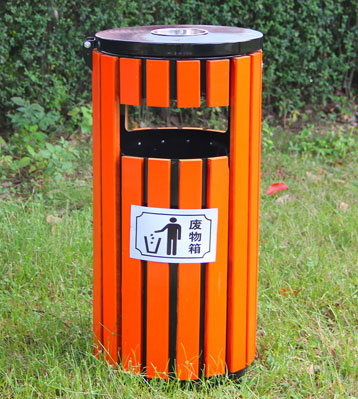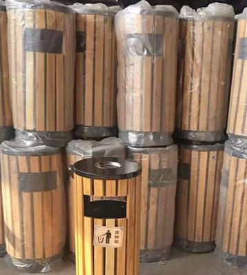 產(chǎn)品材質(zhì):欣方圳圓形單投口鋼木垃圾筒采用現(xiàn)代化批量制作工藝