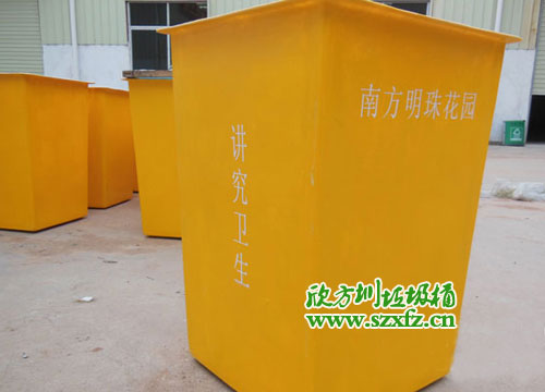 ? 欣方圳為南方明珠花園定做了50個玻璃鋼垃圾桶桶身,客戶要求只采購桶身,不需要配置桶蓋,并對桶身的外觀和細節做了相應的調整和要求。
