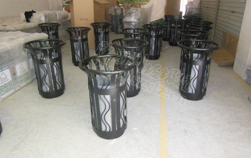 ? 客戶訂購的這款F01花籃垃圾桶,名稱也叫鋼制垃圾桶。花籃式戶外垃圾桶頂圈圓管用35mm,厚1.5mm,扁鋼用厚度3.0mm,寬30mmm,花籃式戶外垃圾桶桶身上下圈厚度3.0mm*高65mm.花籃式戶外垃圾桶內桶分別用塑料桶或者玻璃鋼兩種材質。外觀呈花籃,整個形狀有點像打籃球的投籃口。學校的女同學,投遞垃圾時可以練習投籃,不在怕投不上高高的籃球架上去。環保與娛樂相結合,為校園添加不少樂趣。