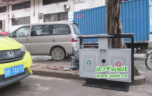 ? 廣州市新塘鎮街道辦采購F49戶外分類環保垃圾桶,按照15天交貨日期,如期完工,送貨上門。此款F49戶外分類環保垃圾桶規格為:1000*350*1000.鋼制垃圾桶屋檐桶頭設計,防止雨水傾入內桶。鋼制垃圾桶中間圓形煙頭投口,有害物投口,充分利用空間。桶兩邊都絲印有,標志,字體,不可回收字樣,采用紅顏色。 標志,字體,可回收字樣,采用綠顏色。巧妙的設計,結合城市人性化,更好服務城市居民。