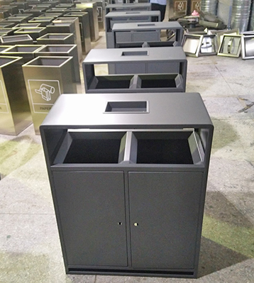 產(chǎn)品材質:戶外高檔兩分類鋼制垃圾箱采用現(xiàn)代化批量制作工藝,選用優(yōu)質冷軋鋼板,核心部件模壓成型不脫焊不易破損堅固耐用。表面經(jīng)過除油、噴砂防銹處理后,再進行酸洗磷化處理,鋼制桶表面清理后整體進行靜電噴涂或烤漆處理,靜電噴涂是經(jīng)過流水線高溫固化爐固化后再出爐冷卻,漆面色澤耐久,防腐防銹。