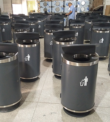產品材質:市政戶外道路其他垃圾桶采用現代化批量制作工藝,選用優質冷軋鋼板,核心部件模壓成型不脫焊不易破損堅固耐用。表面經過除油、噴砂防銹處理后,再進行酸洗磷化處理,鋼制桶表面清理后整體進行靜電噴涂或烤漆處理,靜電噴涂是經過流水線高溫固化爐固化后再出爐冷卻,漆面色澤耐久,防腐防銹。