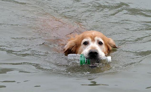 ? 這只環保狗在蘇州當地很有名氣的,只要它出現,就會吸引眾多觀眾。每次出門,它至少要在河里撿回二三十個瓶子,這10年來,累計撿瓶子數量超過2000只。上岸后還會主動把瓶子叼到岸邊的鋼木垃圾桶邊,等著主人把瓶子扔進桶中。