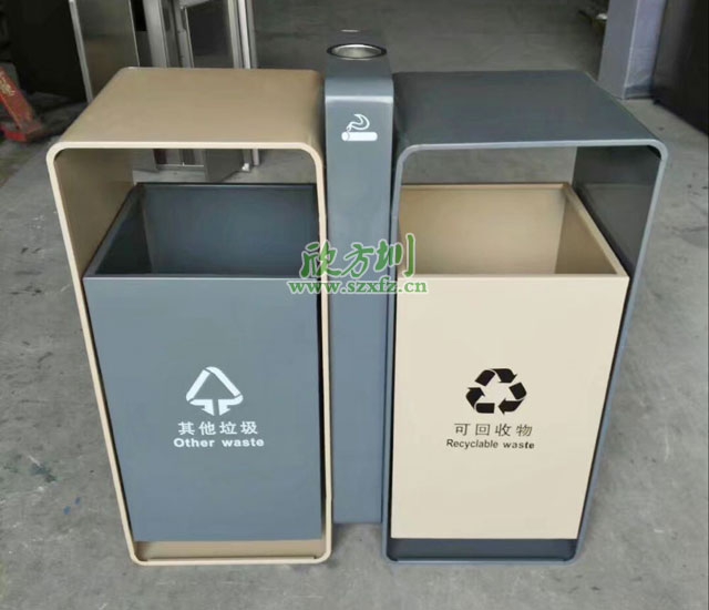 ??這次交付北京陽光城檀悅的就是欣方圳垃圾桶廠家定制生產的F330鋼制分類垃圾桶,其出廠產品規格為:920*400*1080mm。桶頭圓邊角防雨水設計,使用模具一次性沖壓成型技術,邊緣不割手堅固耐用;桶頂立柱凸顯煙灰盅設計精致實用,也方便對煙頭的清理!桶身整體工藝采用激光切割模具沖壓成型,邊角精細打磨拋光,內置配鍍鋅內桶防銹耐腐蝕,桶身分類標識醒目,也可選擇電鍍黑金、玫瑰金、噴塑、烤漆等垃圾桶工藝,工廠生產水平完全可以做到按需生產設計。滿足定制需求,讓您使用的產品具有獨特性。